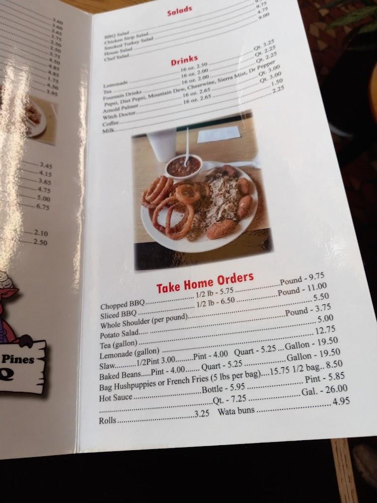 The menu at Whispering Pines B-B-Q focuses on traditional southern barbecue. Signature items include their famous chopped and sliced barbecue served with tangy sauce. Diners can also indulge in delicious sides like hushpuppies and house salads. These sides complement the main attractions well, maintaining the southern charm.